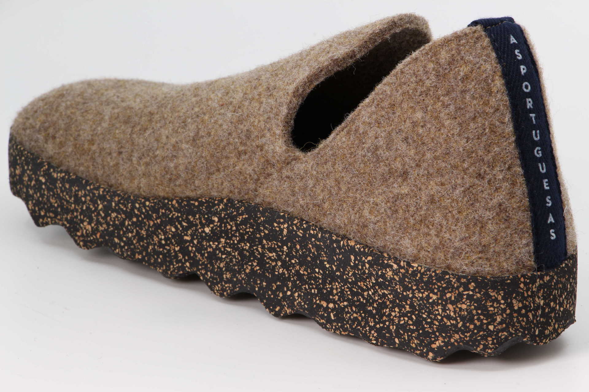 Farbenfroh und modisch sind die Mules von Asportugesas. Das Modell besteht aus natürlicher Wolle.