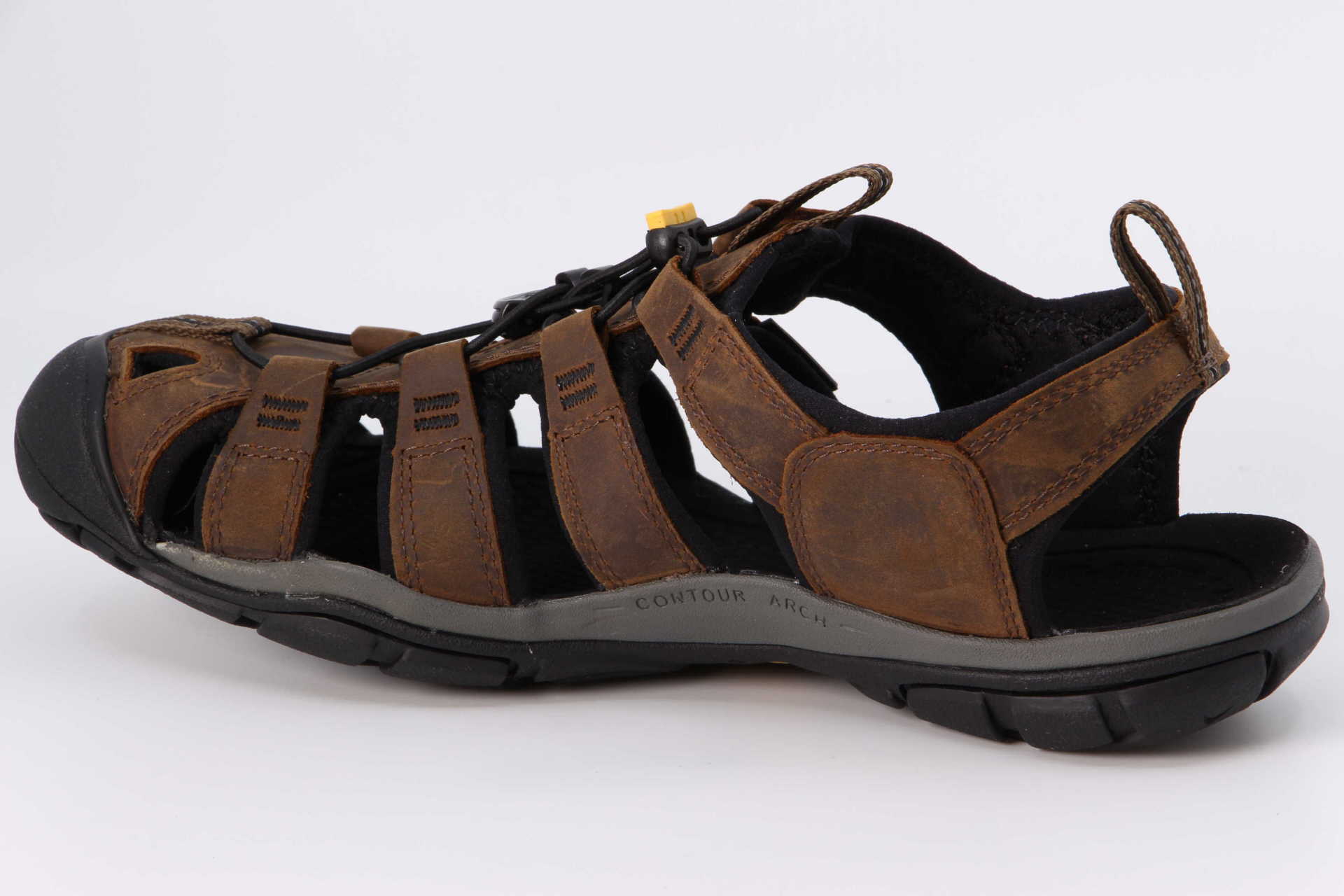 Die bewährte KEEN-Passform und der Zehenschschutz nun noch besser, damit sich jeder Schritt natürlich anfühlt. Der Clearwater CNX Leather kombiniert Obermaterial aus hochwertigem Leder mit dem Aussehen einer traditionellen KEEN-Sandale. Das Schnellzugschnürsystem sorgt für optimale Passform. Mehrdirektionale, flexible Rillen in der Sohle verbessern die Flexibilität und erhöhen die Trittsicherheit während des Laufens. Das integrierte Messerschnitt-Profil sorgt für Bodenhaftung auf glattem Untergrund.