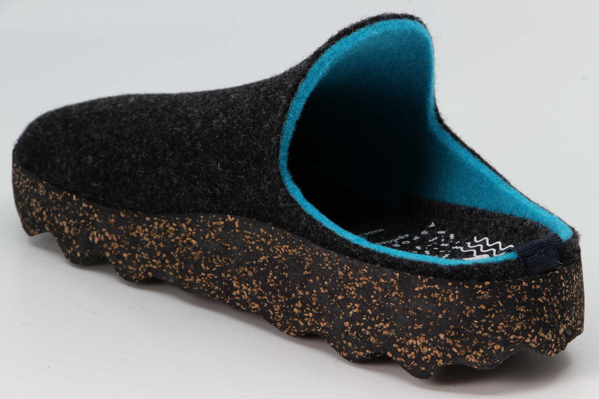Farbenfroh und modisch sind die Mules von Asportugesas. Das Modell besteht aus natürlicher Wolle.