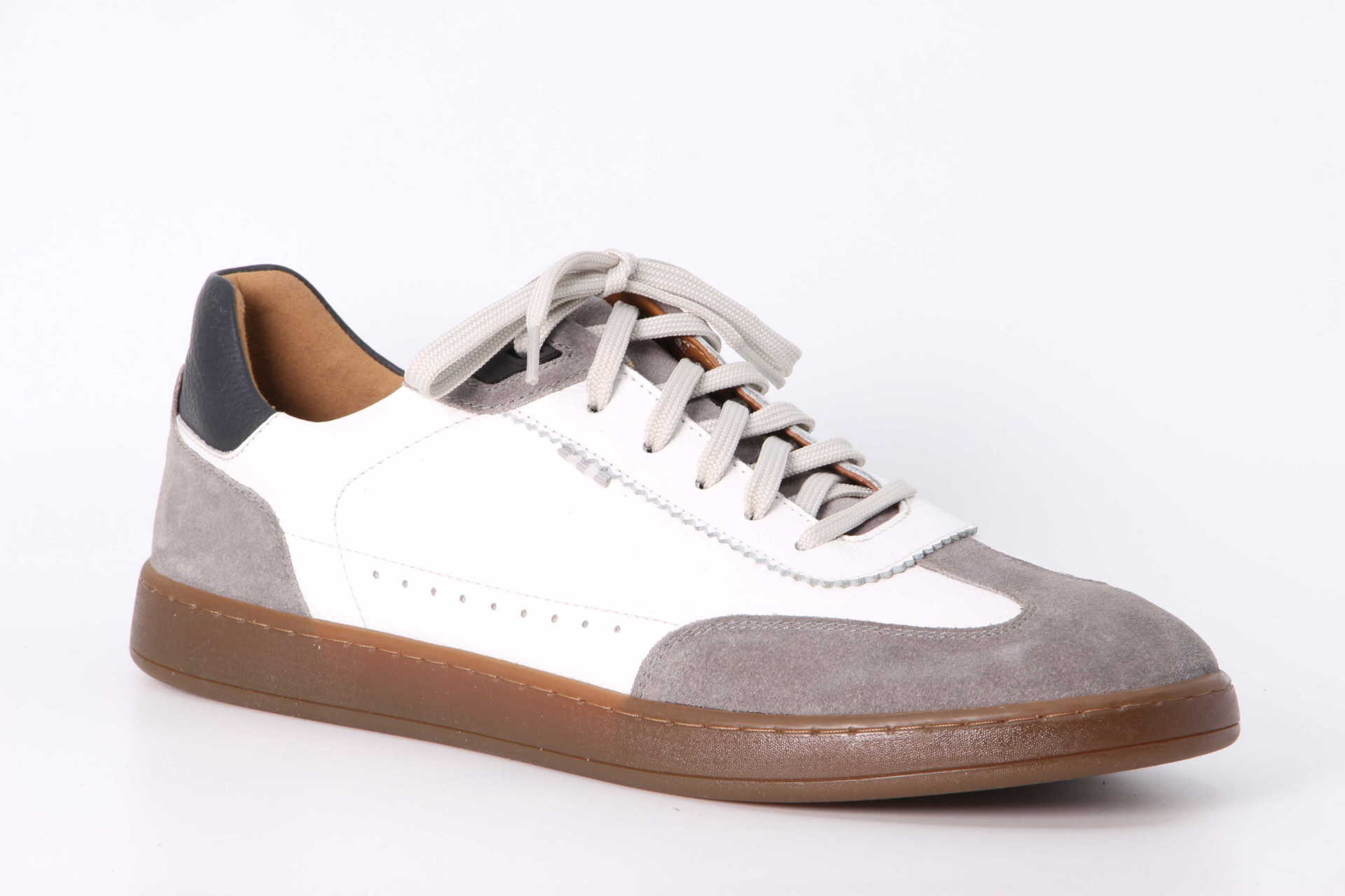 Dieser sportliche Sneaker vereint modernes Design, hochwertige Materialien und durchdachte Funktionen, die jeden Schritt zum Vergnügen machen. Gefertigt aus einem robustem Ledermix mit einem Innenfutter aus Leder und Textil, steht er für Langlebigkeit und einen ausdrucksstarken Look, der sich mühelos in Ihre Garderobe einfügt. Die weiche Rundumpolsterung verhindert unangenehme Druckstellen und sorgt für einen geschmeidigen Sitz am Fuss – vom ersten Moment an. Dank der praktischen Schnürung lässt sich der Sneaker individuell anpassen und bietet sicheren Halt bei jedem Schritt. Das weich gepolsterte Fussbett ist eine Wohltat für Ihre Füsse, denn es sorgt für eine ausgezeichnete Dämpfung und reduziert die Belastung auf Ihre Gelenke. Für noch mehr Flexibilität kann das Fussbett herausgenommen und durch Ihre persönlichen Einlagen ersetzt werden – für einen Schuh, der perfekt auf Ihre Bedürfnisse zugeschnitten ist. Und das Beste: Der Schuh ist extrem leicht, sodass Sie fast vergessen werden, ihn zu tragen. Probieren Sie ihn aus und erleben Sie, wie ein Schuh Ihre Tage leichter macht!