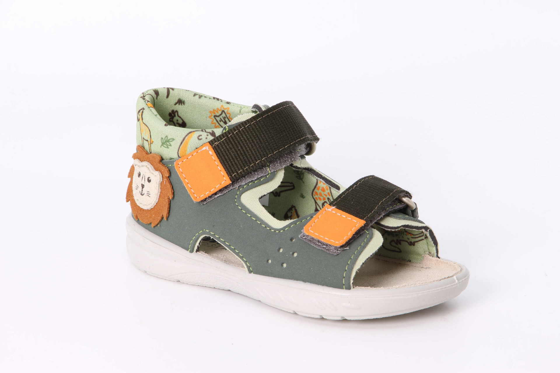 Die Sandalen FRANKIE von PEPINO by RICOSTA bestehen aus innovativem HighTech und Textil. Sie sind waschbar und somit pflegeleicht. Mit zwei Klettriemen lassen sich die Kinderschuhe schnell und einfach verschliessen. Die Zehen sind bei diesem luftigen Modell frei, während der Fersenbereich geschlossen und weich gepolstert ist. So bekommt der kleine Fuss ausreichend Halt. Eine dicke Sohle schützt den Fuss von unten. Das optische Highlight bildet der Löwenkopf seitlich der Ferse.