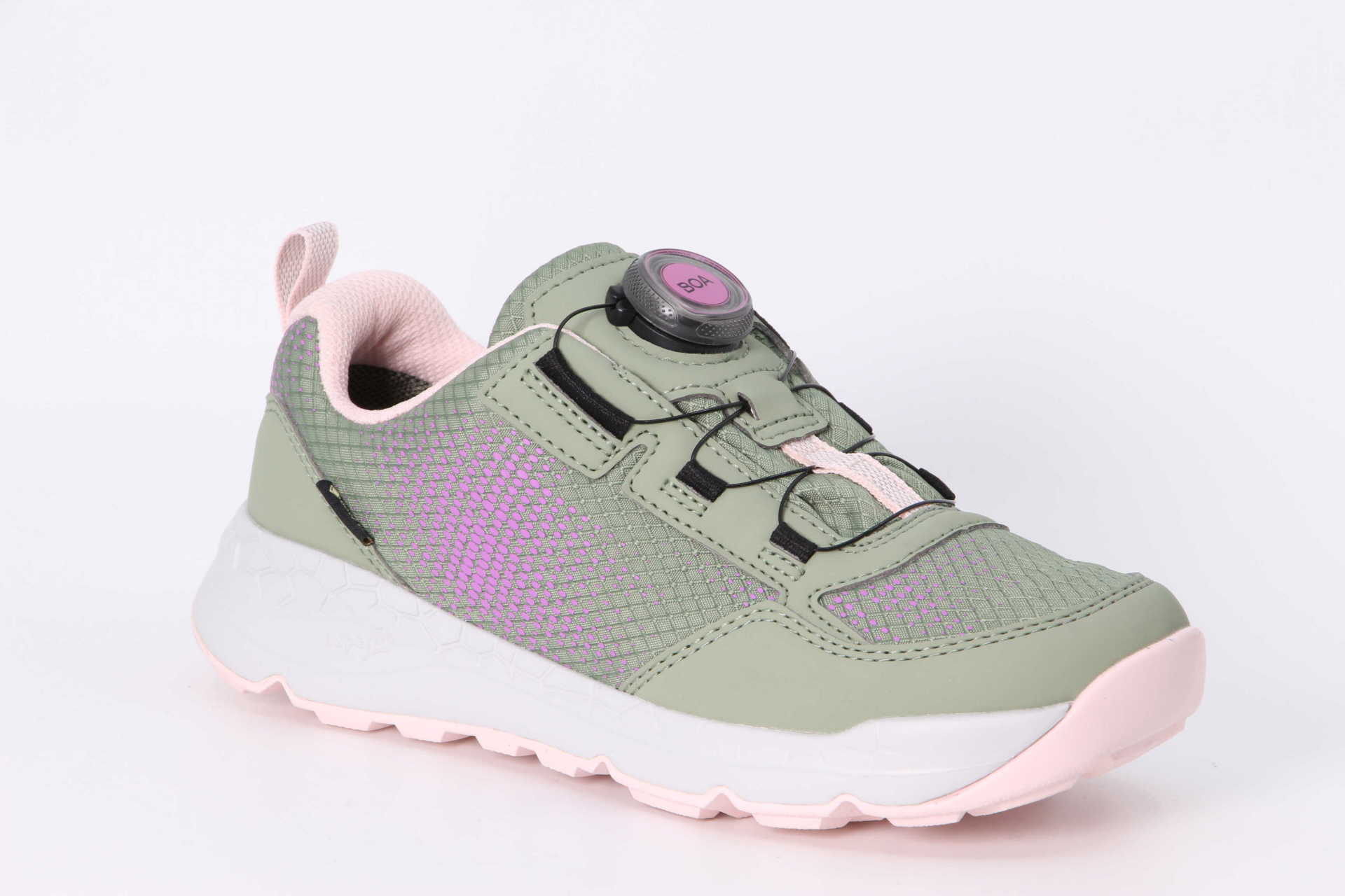 Wenn das mal kein cooler Sneaker ist: FREE RIDE von superfit. Der vegane Schuh aus superleichten, robusten Textilien überzeugt trendbewusste Youngsters mit mehrfarbigem Colour-Blocking und knalligen Akzenten. Ebenfalls stylish: das bunte BOA® Fit System, das aus Drehverschluss und Seilen besteht und super mit einer Hand zu bedienen ist. Die Sohle von FREE RIDE rundet mit ihrem Steinrelief und der Zweifarbigkeit den lässigen Look ab.
