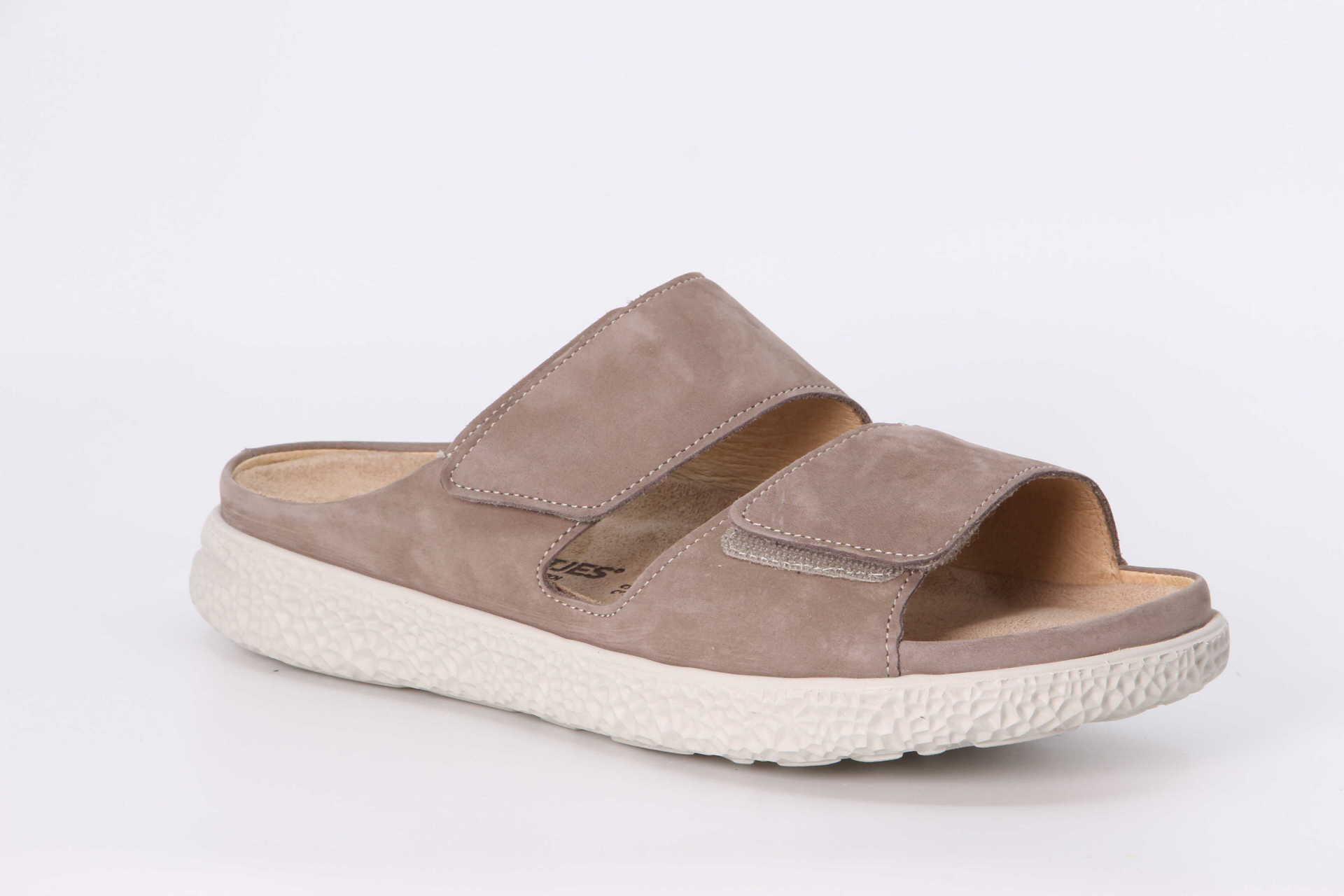 Luftige Pantolette für drinnen und draussen aus butterweichem und hochwertigem Veloursleder. Die Riemen lassen sich durch Klettverschlüsse perfekt anpassen und bieten guten Halt. Mit Innenfutter aus Leder und einem bequemen, anatomisch geformtem Korkwechselfussbett mit Leder bezogen. Eine elastische und flexible Sohle mit integrierter Abroll-Linie unterstützt die natürliche Bewegung des Fusses. Sehr leichte Sohle dank XL Extralight Technologie.