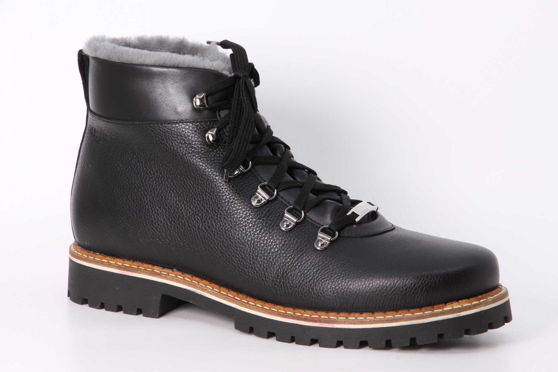 Der Herrenstiefel im Retrolook von Lienhard „swiss made“ wird in Thun im Berner Oberland hergstellt. Das rustikale Oberleder bietet Schutz vor Schnee und Kälte. Für kalte Tage ummantelt Ihre Füsse das wärmespeichernde Lammfellfutter. Ein dämpfendes Wechsel Fussbett bietet zudem wunderbaren Tragekomfort. Durch den Winter trägt Sie die robuste TR-Gummisohle.