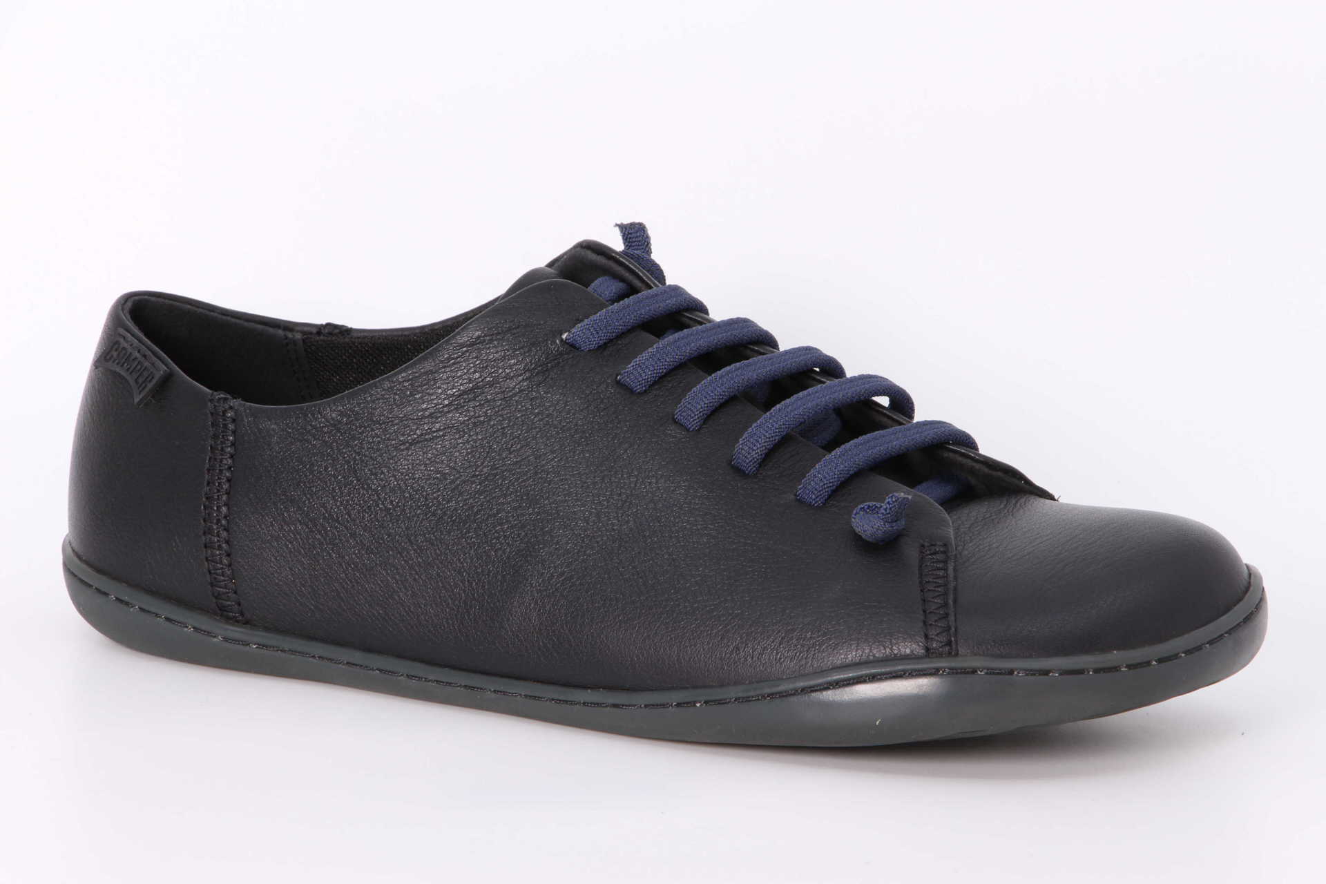 Schwarze Rindsleder-Schuhe für Herren mit Podoactiva-zertifizierten, herausnehmbaren PU-Einlegesohlen, elastischen Schnürsenkeln und BRIDGE XTRAGRIP-Gummilaufsohlen.